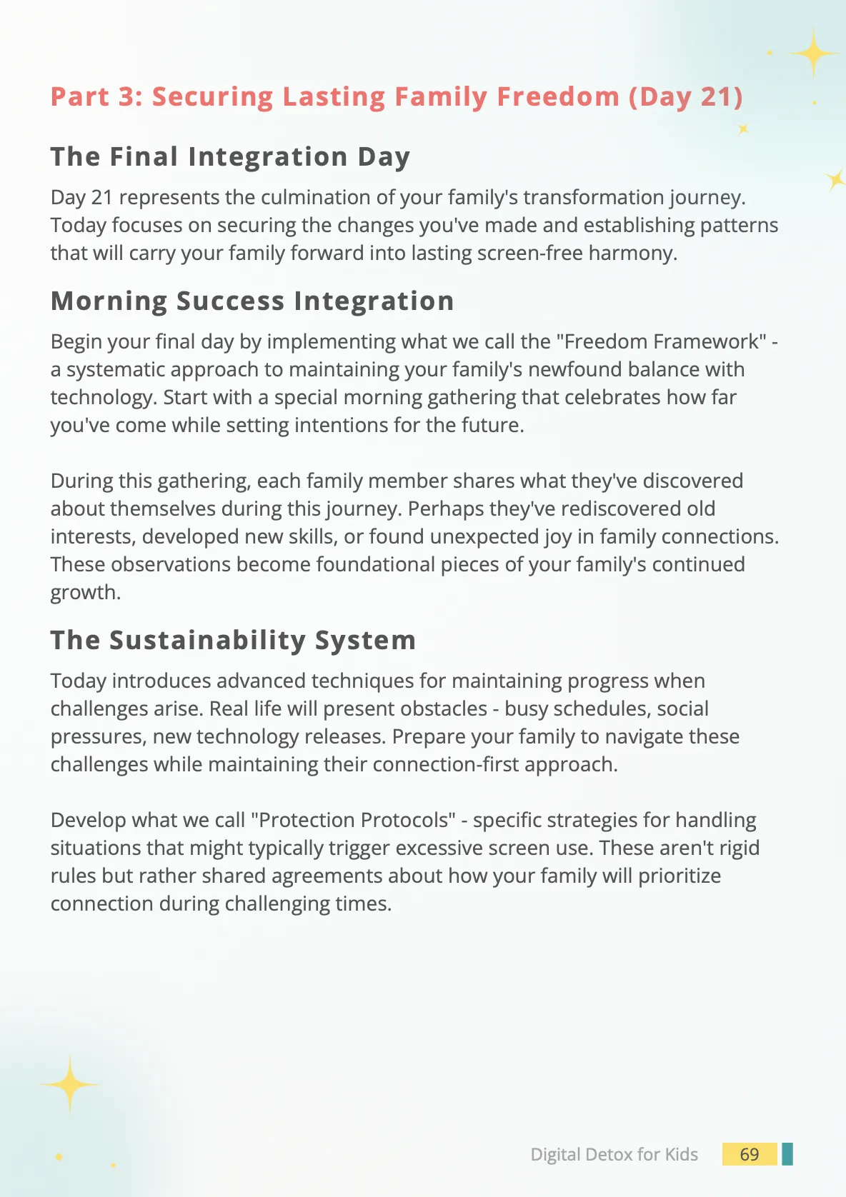 The Digital Detox Formula isn't about eliminating all screen time - it's about creating healthy boundaries and restoring balance. You'll learn how to make necessary screen time productive while preventing addiction.